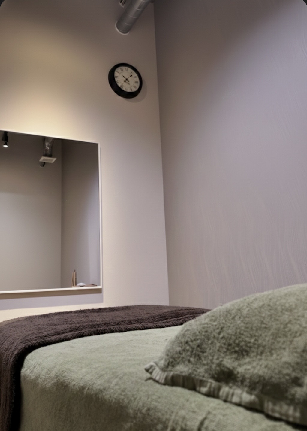 サロン内は、 清潔感と温かみのある、落ち着いた空間です。完全個室ですので、誰の目も気にせず、リラックスして施術を受けていただけます。