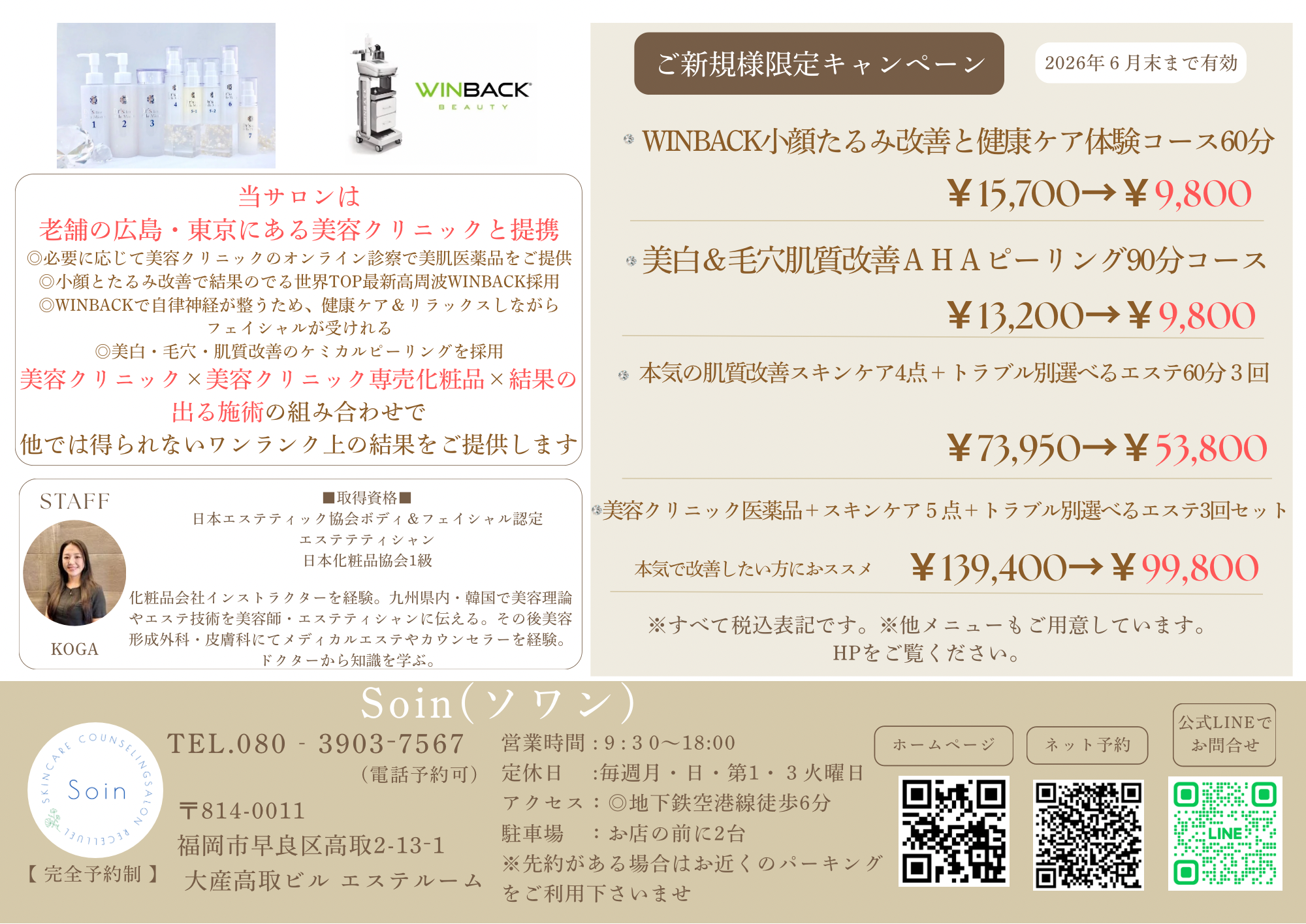 この度、一人でも多くの早良区高取周辺の女性に、この「美容医療×エステ」の感動を体験していただきたく、特別なキャンペーンをご用意いたしました。